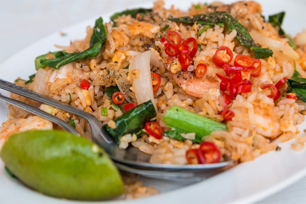 Other dishes of Khao Phat including coconut fried rice (khao phat maphrao), pineapple fried rice (khao phat sapparot) and basil fried rice (khao phat kaphrao).