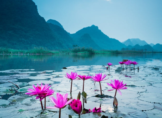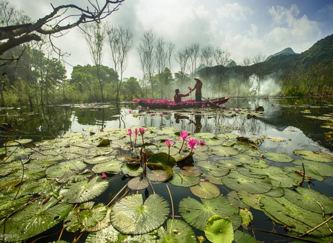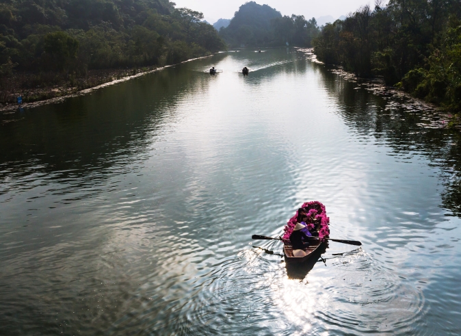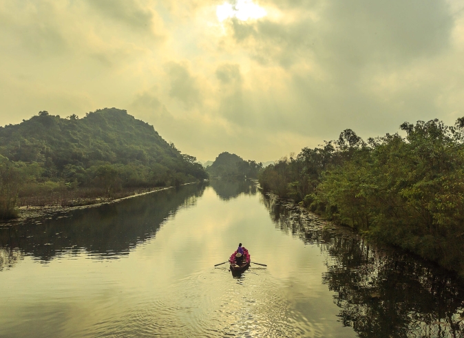 9.45am : Arrive in Perfume wharf then get on boat , Enjoy the best time of visiting this area on Yen Stream on the Local boat about 1 hour to Thien Tru harbor.