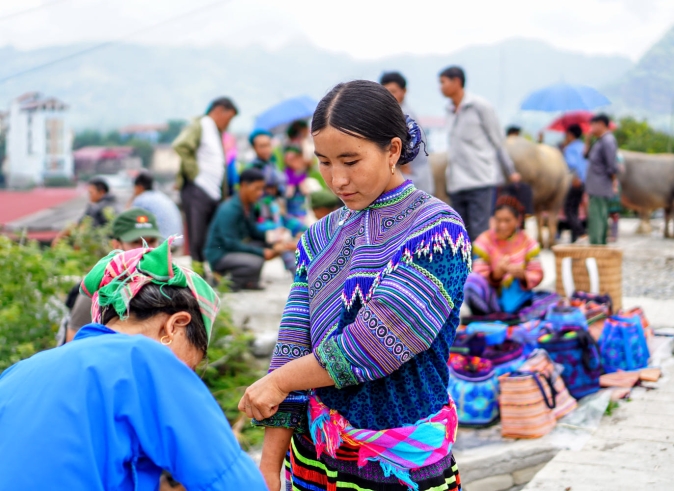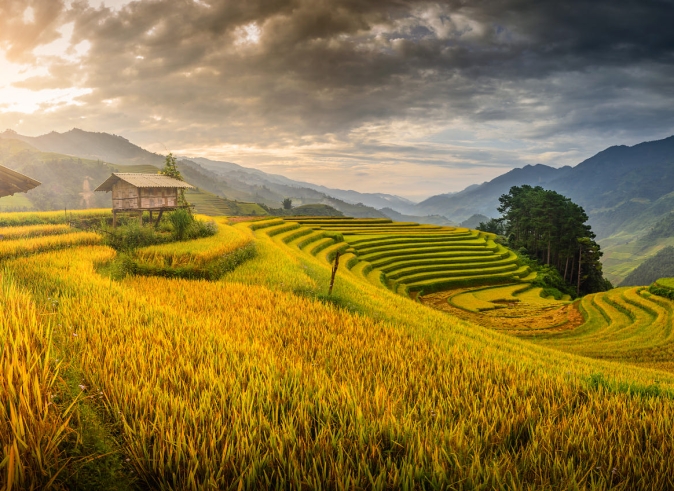 9.00am: A short drive to Y Linh Ho then trek through the rice terraces and along Muong Hoa Stream to the Black Hmong village of Lao Chai to see the spectacular landscape of Hoang Lien Son Mountain after that heading to Ta Van village - home of Dzay ethnic people.