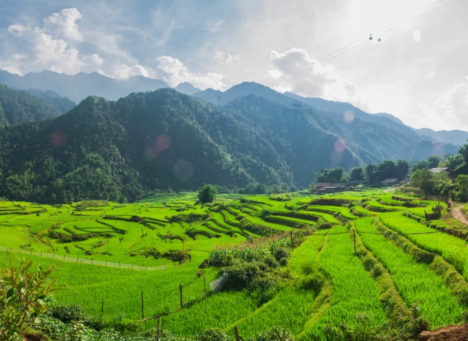 then transfer to Su Pan. Start a walking downhill through the breathtaking scenery till Ban Ho village, where you will be able to witness the stunning views of the valley and rice paddy terraces. Explore the Ban Ho village of Tay minority before crossing the suspension bridge over the river. The walk then continues uphill to the Red Dao minority village of Nam Toong, where lunch is well prepared in local school by tour guide.