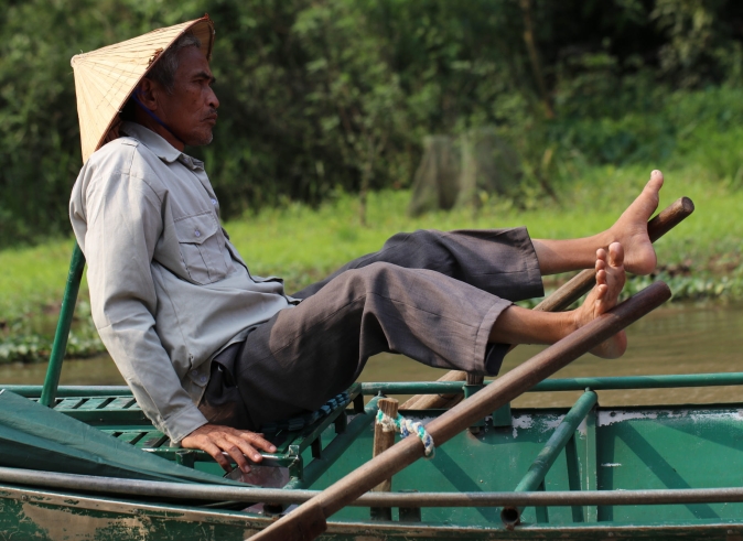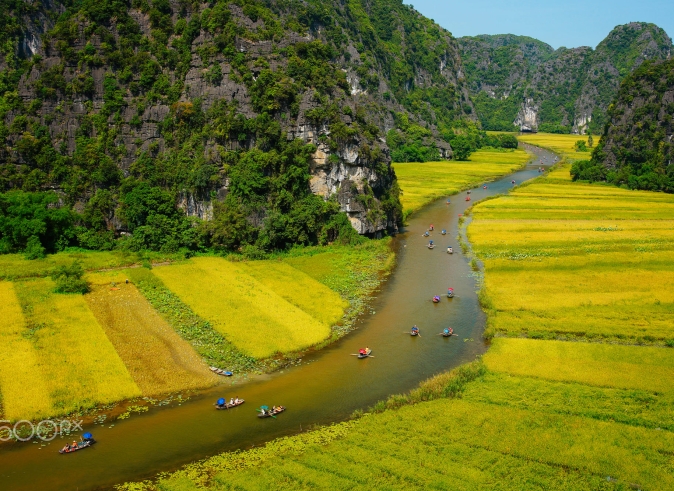 Get on the sampan boat to do the trip along the river. Enjoy peaceful and picturesque landscapes of Tam Coc river. And you will understand why it considered as Halong Bay on Land.