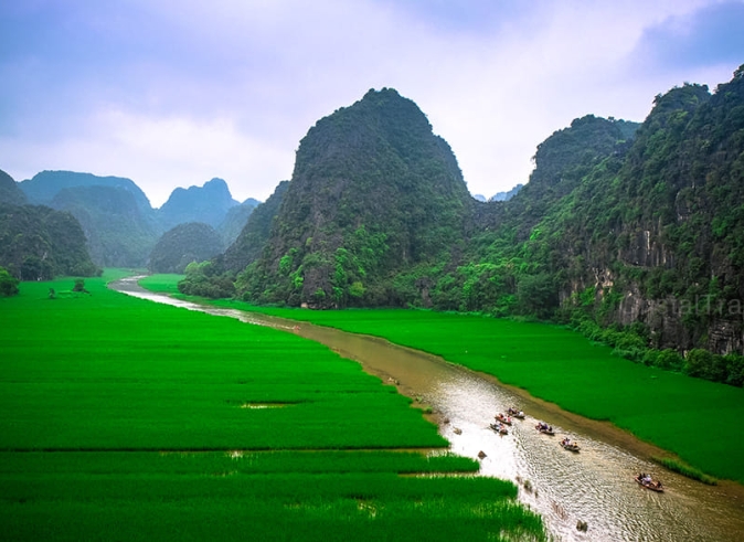 Just 100 km South of Hanoi, Ninh Binh is a province of astounding natural beauty with limestone peaks whose splendor is often said to surpass that of Ha Long Bay. It is even often referred to as “Ha Long Bay on land.”