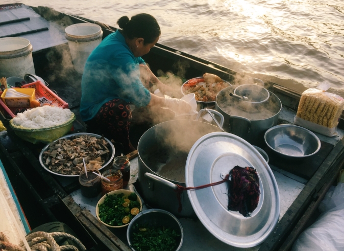 Then spend the rest of the morning paddling the Vietnamese boat and explore the now tranquil coconut-palm flanked waterways before breaking to prepare lunch with a local family. Your lunch will consist of many local delicacies