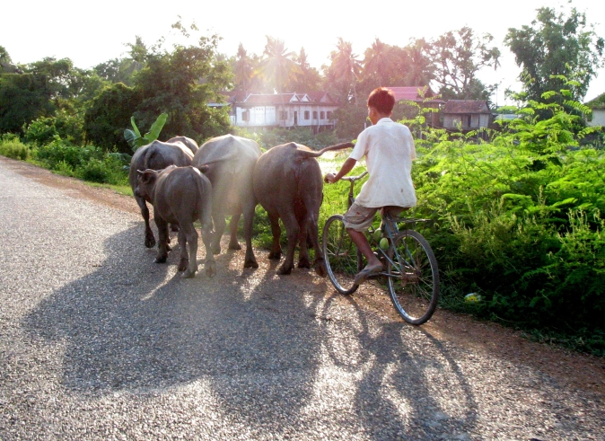 You will be picked up by your guide and local Remok (tuk-tuk) or motorbike from the hotel in Kratie and travel on the old national route 7 along the river bank towards Kampi. One of the many deep pools where the rare river dolphins gather to feed. Along the way, we journey pass through a village that produces delicious snacks, famous sticky rice packed in bamboo (Krolan) and pickle raw fish in banana leaf (Nhem). Thma Kreae village is particularly famous for Krolan. This tasty snack is famous all over Cambodia and locals would never leave Kratie Province without buying a stock for relatives and friends back home. A must to try at least once.