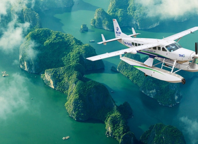 With a water takeoff and landing from Tuan Chau Island Marina, our 25-minute sightseeing flight takes in the highlights of UNESCO-listed Halong Bay, providing a completely different perspective than from a cruise ship. From the air, the islands appear as mountain ranges, resembling the undulating body of a dragon, the meaning of “Halong” in Vietnamese.
