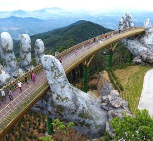 12:45: Conquer the Peak of Chua mountain at the height of 1,487m. Enjoy the panorama view of the Da Nang from the top of Ba Na Hills. And then visit Golden Bridge.
