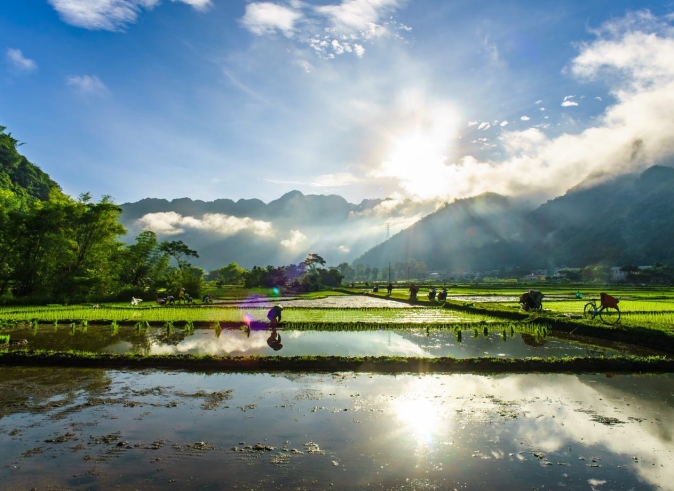 7.00 – 7.30AM Start the day with a simple breakfast with your host family then take a short bike ride through the surrounding countryside, before setting off on a trek through rice terraced paddies combined villages Immerse yourself in the vibrant local culture and scenery.