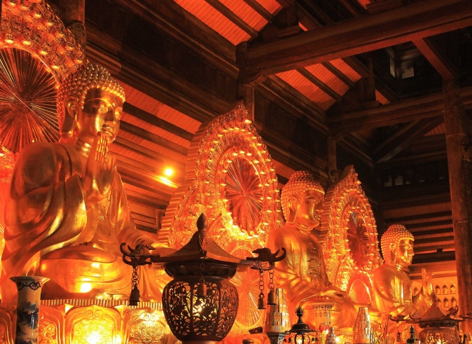 13.00: Go to visit the biggest pagoda system in Southeast of Asia. Visit the beautiful pagoda system with 500 La Han statues, biggest bronze Buddha statue in Vietnam with 10 meters in height, 100 tons in weight.
