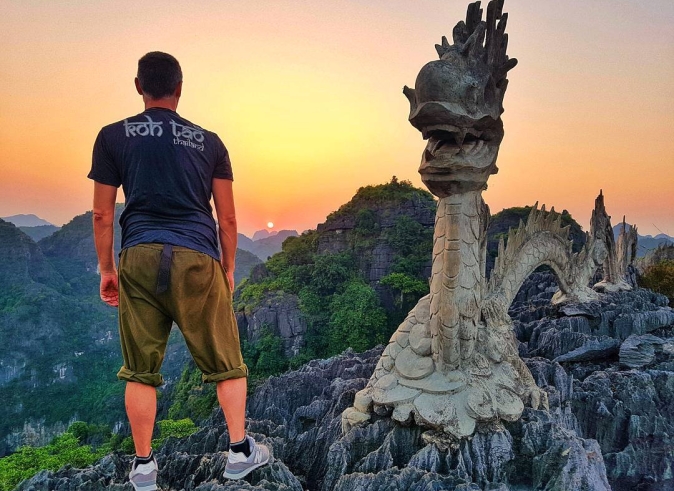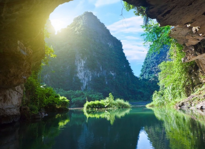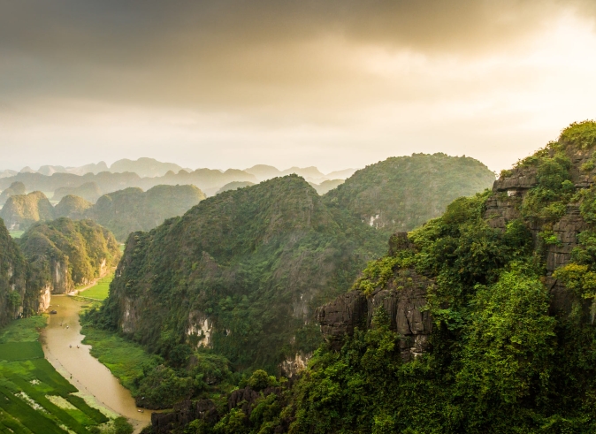 Climb up more than 500 steps to reach to the peak of the cave. You can climb step by step and enjoy the panorama view from the top. The landscape combines the rice fields, river, and the moutains...