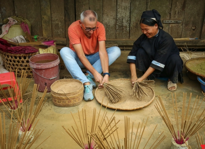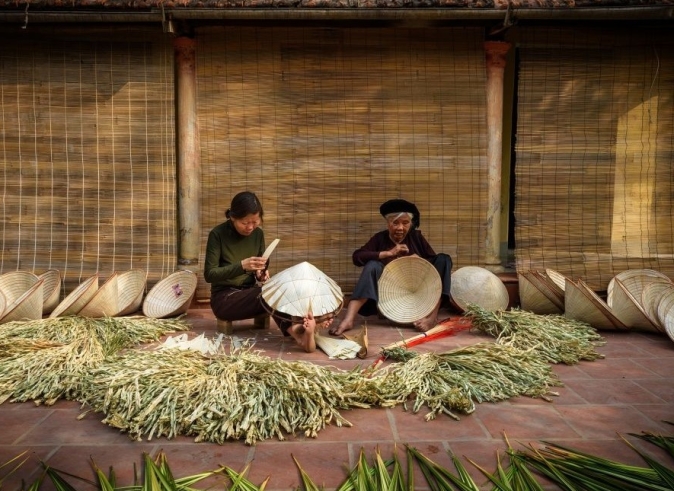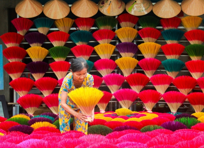 Escape the hustle of Hanoi’s center and slip into the calm of its artisan suburbs. Wander through the crimson incense yards of Quang Phu Cau, watch the timeless craft of Chuong’s conical hats, and admire the shimmering art of Hanoi’s lacquer village. Savor a home-cooked lunch with locals before, if you wish, finishing on the famous Train Street as the city comes alive.