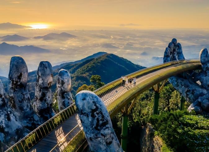Visit the Golden Bridge, an architectural masterpiece held by giant hands, and stroll through the romantic Le Jardin D’Amour Gardens with its nine themed areas. Continue to explore the Linh Ung Pagoda, home to a giant Buddha statue, and the charming French Wine Cellar, a relic from the colonial era.